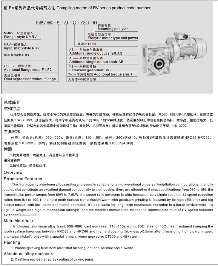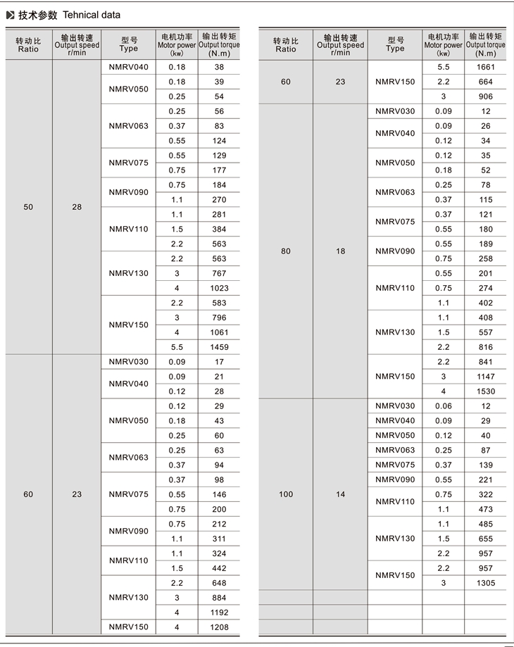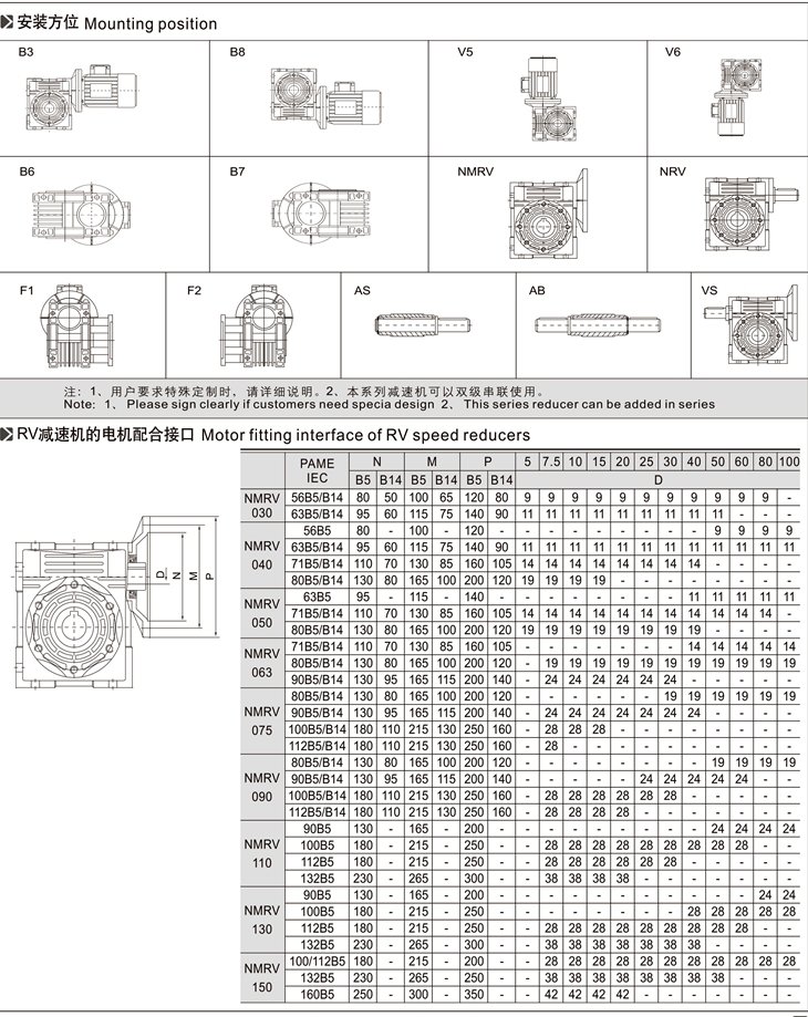 4、與RV、NMRV、NRV蝸輪蝸桿減速機配套的電機必須合適在低溫環境中工作;