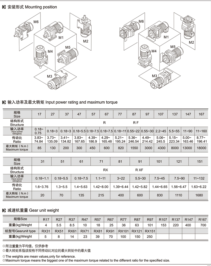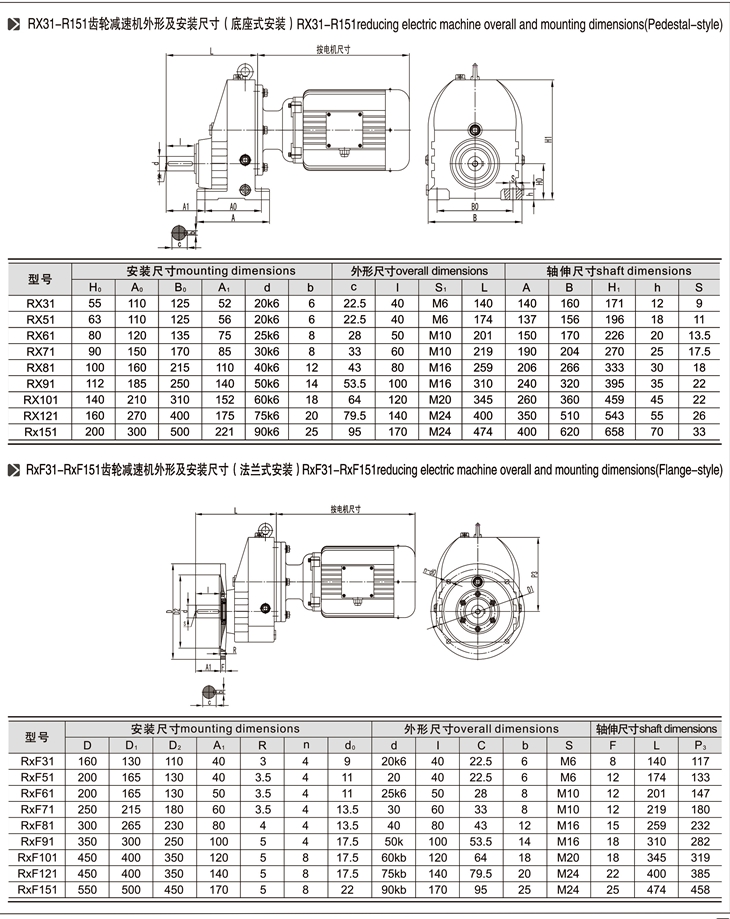 RF:底腳法蘭安裝   RM:法蘭安裝帶加長軸承箱